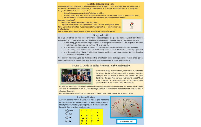 Nous sommes heureux de vous accueillir sur le site officiel de notre comité dont l'adresse est " comite-orleanais-bridge.club.ffbbridge.fr" Pour conn...